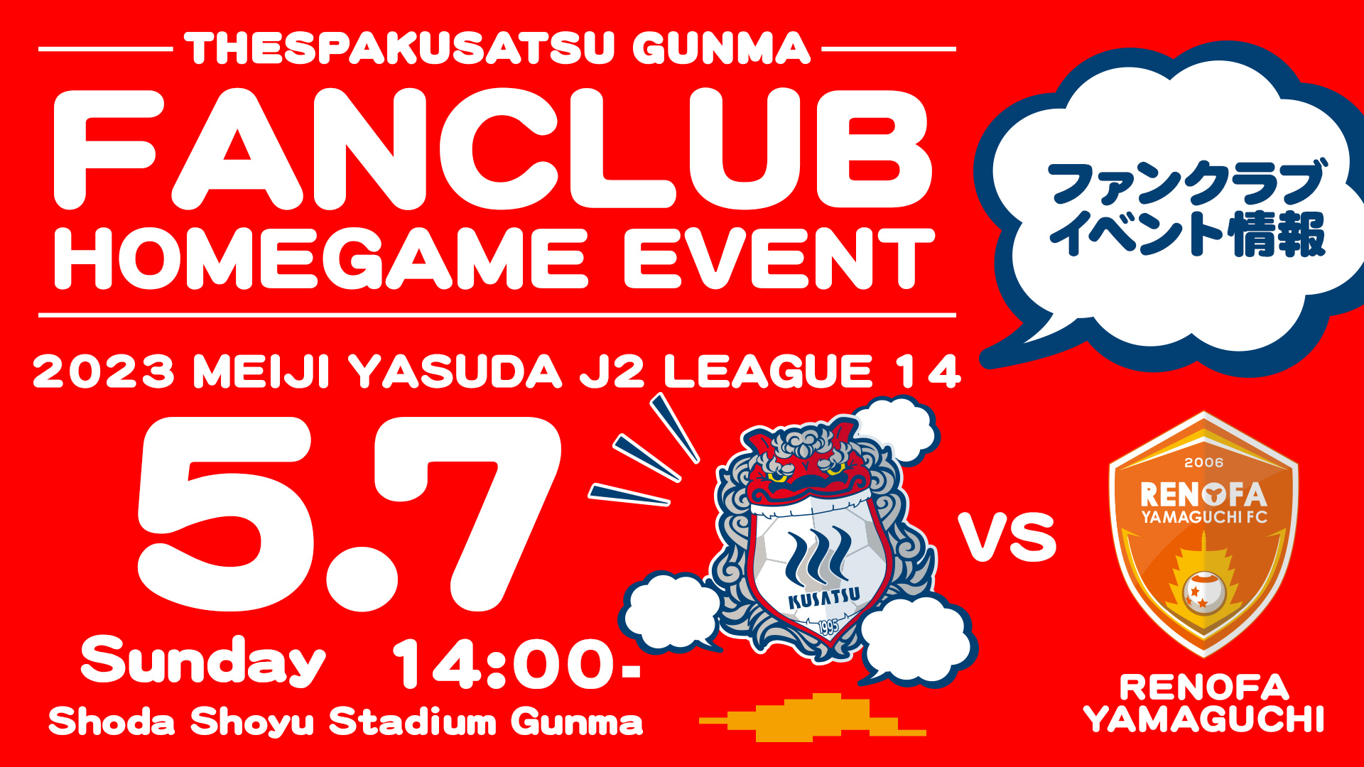 ホーム戦となる、5月7日(日)「ザスパクサツ群馬 VS レノファ山口FC」戦(正田醤油スタジアム群馬・14:00キックオフ)では、ファンクラブブースにて会員様対象に限定ポストカードを先着200名様にプレゼント!