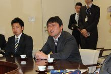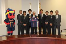 本日(1月30日)、植木繁晴代表取締役ゼネラルマネージャー、武尾誠取締役会長、秋葉忠宏監督、群馬県出身の星野悟選手、乾大知選手、横山翔平選手、黄大俊選手と湯友が、2013シーズンをむかえるにあたり、群馬県の大澤正明知事を表敬訪問いたしました。
